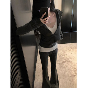 修身运动休闲套装女百搭收腰显瘦连帽卫衣长袖外套微喇长裤2025秋