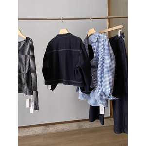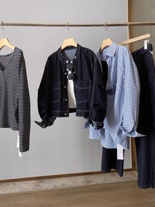 2025年春夏新款复古丹宁蓝无领落肩牛仔外套休闲短款夹克衫