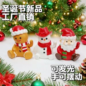 新款圣诞节摆件可发光圣诞老人雪人摆件装饰品树脂工艺品手可摆动