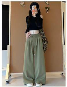 美式军绿色阔腿裤女秋季2025新款宽松慵懒休闲裤小个子低腰运动裤