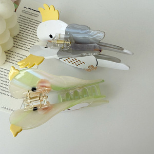 新款小众卡通鹦鹉抓夹创意可爱醋酸发夹子拼色小鸟动物鲨鱼夹发饰