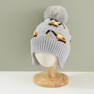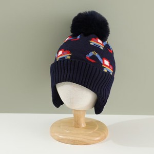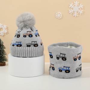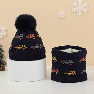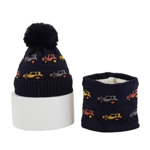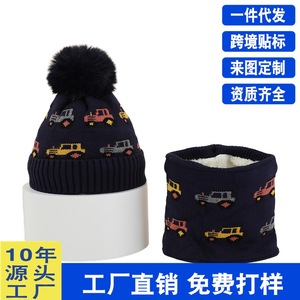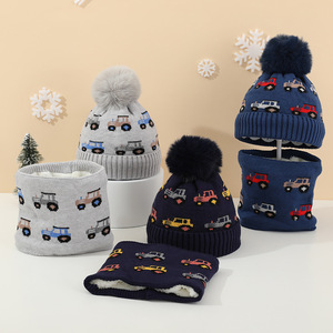 跨境儿童针织帽子围巾套装小汽车护耳保暖宝宝冬帽儿童帽子围脖