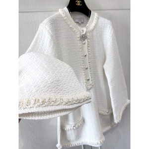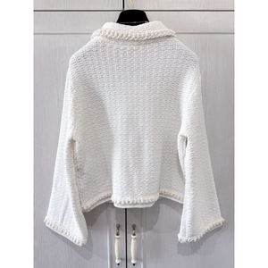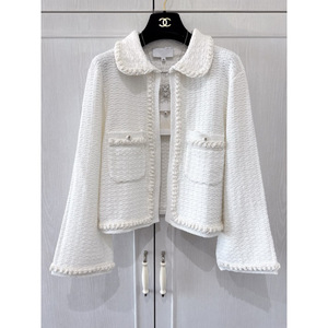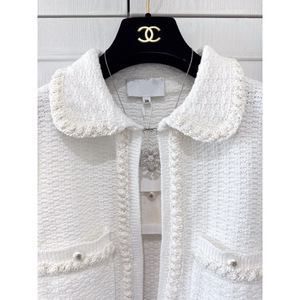 2025P早春新款小香风圆领重工钉珠链条装饰白色珍珠短款外套女