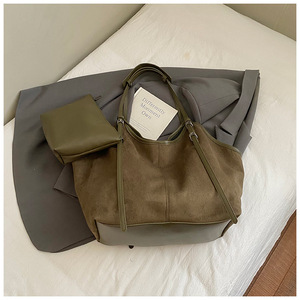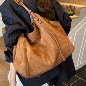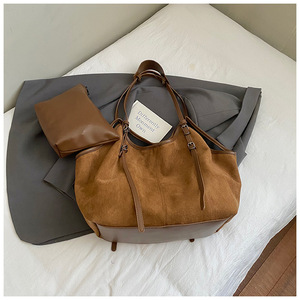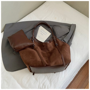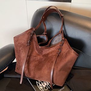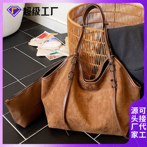 跨境复古大容量腋下包包女2025新款通勤托特包简约麂皮绒单肩包潮