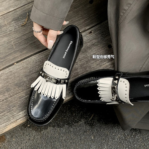 2025春秋新款韩版软底圆头浅口乐福鞋小皮鞋百搭单鞋大码女鞋