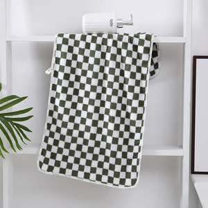 珊瑚绒棋盘格亲肤柔软毛巾吸水加大浴巾不易掉毛成人家用可批发