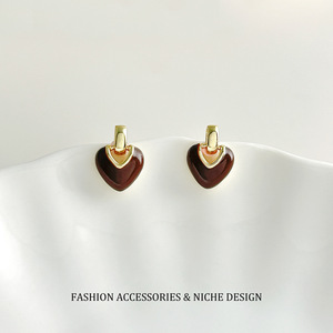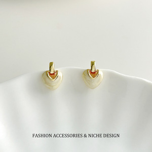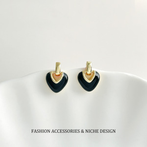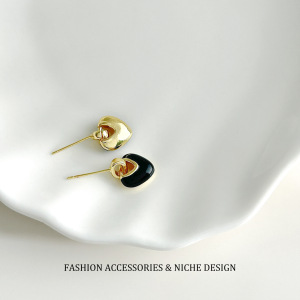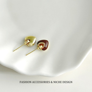 秋冬新款多色滴釉爱心耳钉女简约小众设计感独特个性时尚电镀耳饰