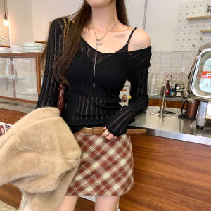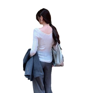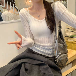 绝美巨好看的镂空v领长袖针织衫女2025新款早秋单穿薄款气质上衣