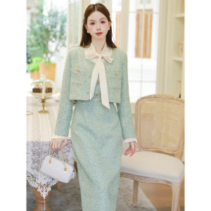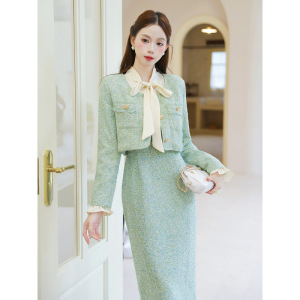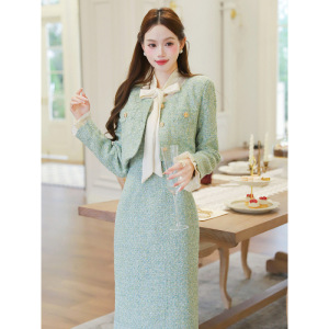 法式气质大方得体绝美连衣裙温柔富家千金感穿搭小香风两件套装秋