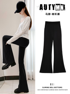 黑色微喇西装裤女秋2025新款小个子高腰垂感直筒不贴腿休闲喇叭裤