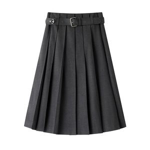 2025年冬季新款女装气质高腰带显示百褶半身裙中长款裙子 3J4S410