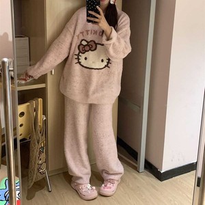 秋冬季ins睡衣女保暖小香风半边绒套头休闲简约家居服套装法兰绒