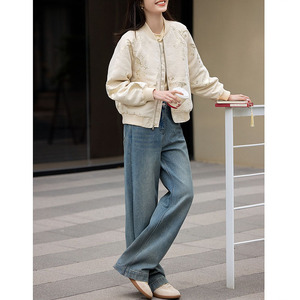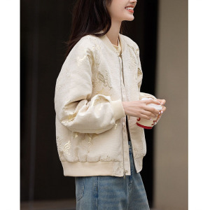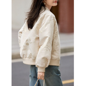 喜上眉梢金丝雪尼尔肌理感新中式提花棒球服外套2025秋季棒球服女