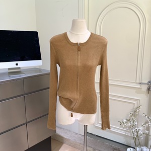 松弛老钱 复古皮牌拉链宽松针织开衫春夏黑色小外套女
