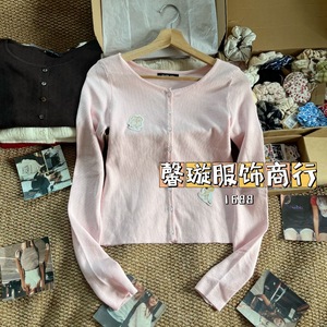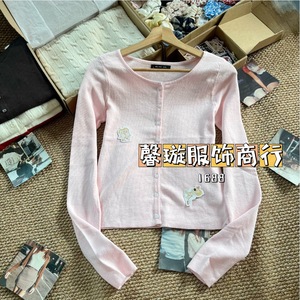 BM风 韩系甜美圆领浅粉色针织开衫女秋季bm休闲百搭毛衣外套上衣