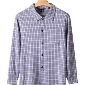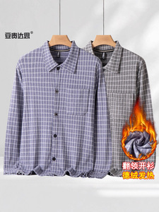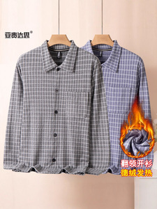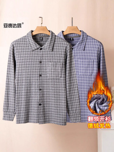 爸爸装秋冬季德绒保暖内衣中老年男士长袖翻领T恤开衫衬衫家居服