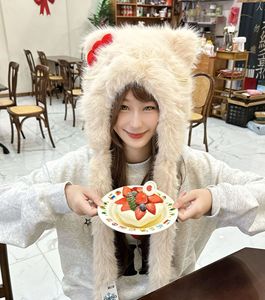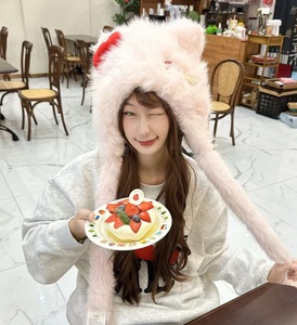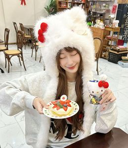 2025新款女冬季毛绒帽子韩系凯蒂猫蝴蝶结帽子可爱时尚保暖毛绒帽