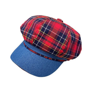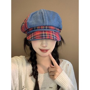新款格子拼色八角帽子女款小众高级感画家帽复古大帽檐贝雷帽批发