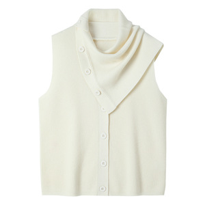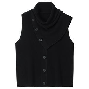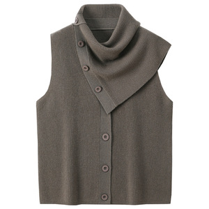 针织衫女秋季小众设计感纯色可拆式围脖无袖马甲外穿纯绵羊毛上衣