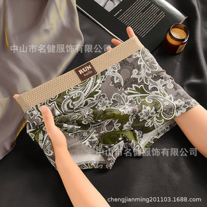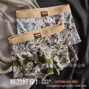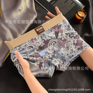 男士纯棉内裤古典山茶花印花内裤男抑菌舒适透气柔软平角裤短裤头