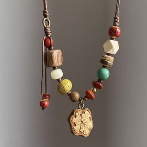波西米亚民族风果实吊坠项链复古手工编绳毛衣链高级感小众锁骨链