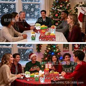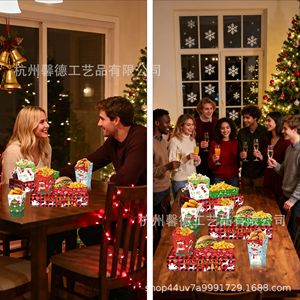 KY016X外贸圣诞节红黑格子节日零食糖果零食托盘爆米花盒支架盒子