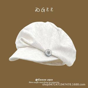 2025年新款褶皱银标宽松贝雷帽子女早秋透气八角帽休闲百搭画家帽