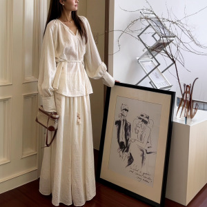 禅意风宽松带腰带长袖衬衫上衣女带新款高级感复古时尚半身裙套装