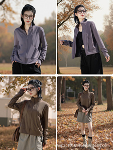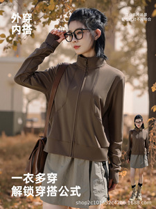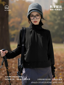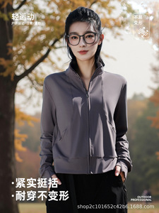 女士休闲外套2025春秋新款户外运动宽松百搭时尚立领夹克弹力上衣