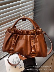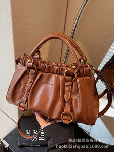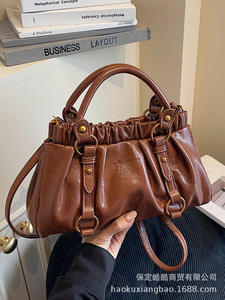 高级感外出手拎包包女式2025新款潮褶皱单肩包通勤百搭斜挎水桶包