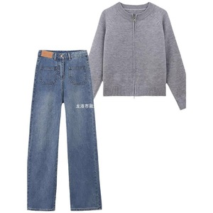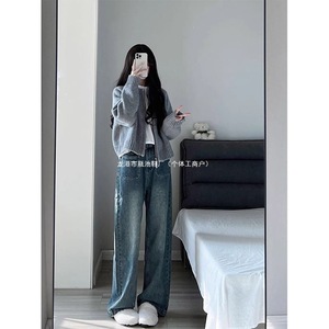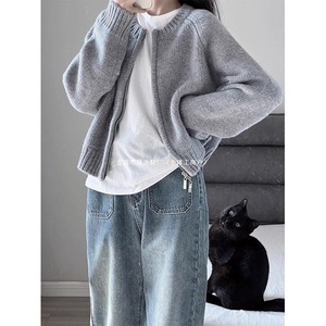 蓝色毛衣外套女针织开衫软糯复古国潮牌秋季外穿拉链上衣通勤卫衣