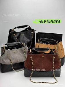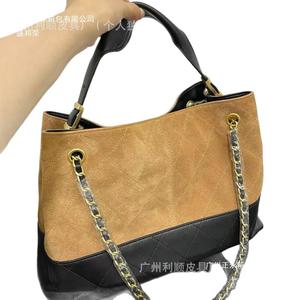 广州高版2小香麂皮双拼色菱格托特包hobo菱格链条横版女包
