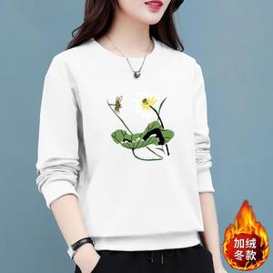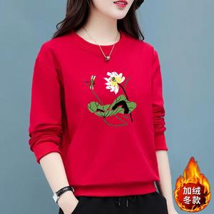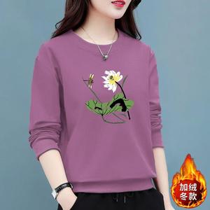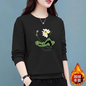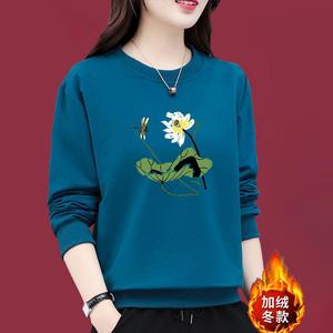 卫衣女2025秋冬季新款长袖上衣宽松大码加绒加厚打底衫中年妈妈装