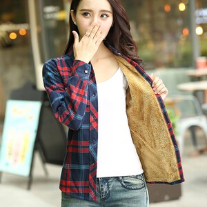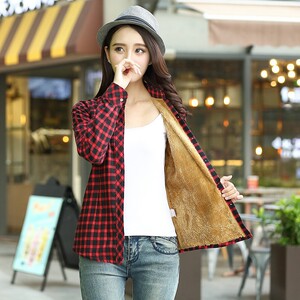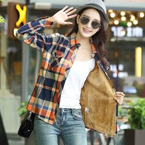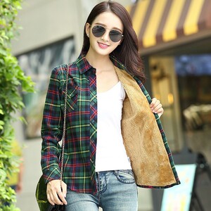 2025年纯棉格子保暖加绒衬衫女长袖秋冬韩版加厚衬衣外套打底女装