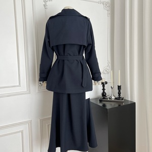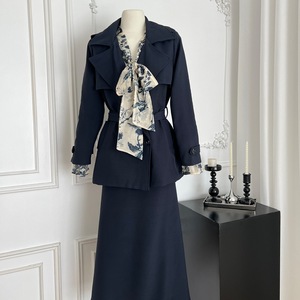 2025秋冬新款长袖印花雪纺衫上衣西装风衣外套半身裙套装女三件套