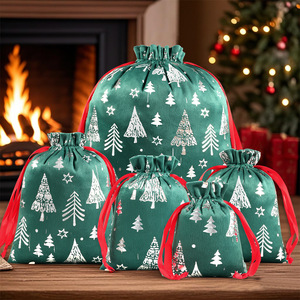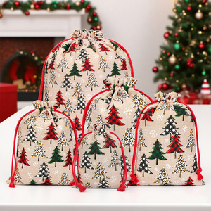 圣诞礼品袋现货批发糖果包装抽绳礼品袋圣诞节麻布束口收纳袋布袋