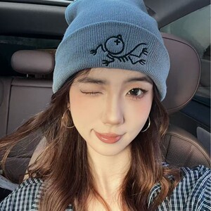 热卖个性针织帽卡通刺绣小鸟套头帽秋冬女学生毛线帽保暖彩色跨境