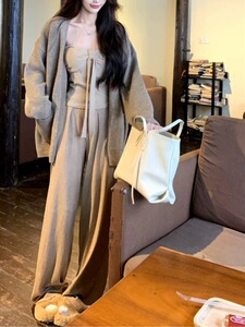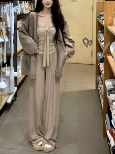 《慵懒感天菜》早秋长袖针织开衫外套休闲裤套装女