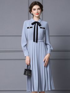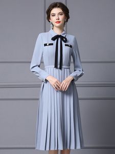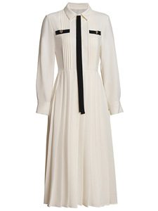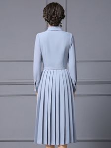 智丽早秋连衣裙女2025新款通勤风简约高智感收腰显瘦长袖百褶裙子