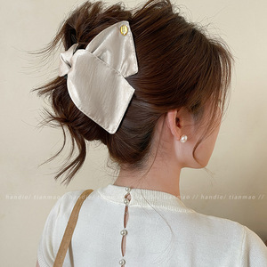 法式赫本三角抓夹高马尾发夹女高级感2025新后脑勺缎面鲨鱼夹发饰