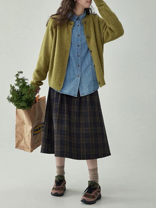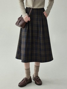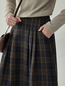 「北岛」法式复古高腰压褶格纹半身裙秋冬显瘦毛呢百褶a字裙