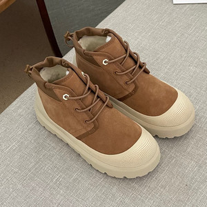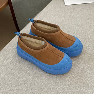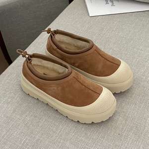 河南桑坡村乐福鞋羊皮毛一体百搭低筒雪地靴一脚蹬情侣鞋