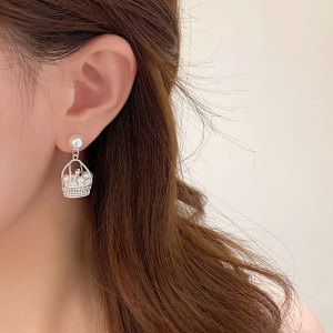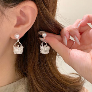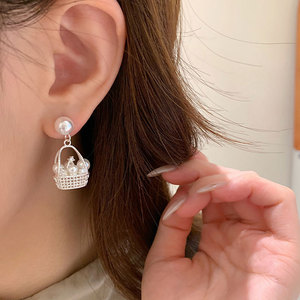 识季花篮耳坠珍珠耳钉女小众设计感独特漂亮气质百搭耳环爆款耳饰