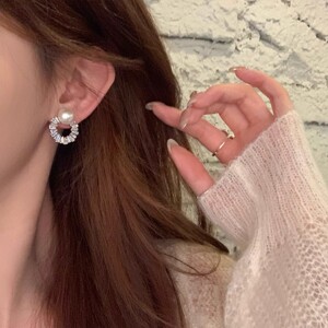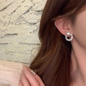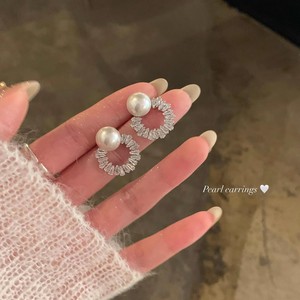 韩系超闪锆石珍珠圆形耳钉女轻奢高级感气质耳环小众独特设计耳饰