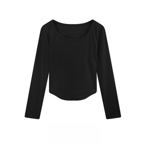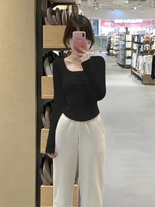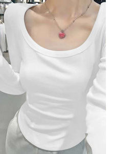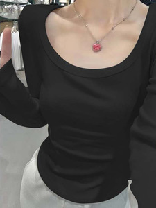 U领白色打底衫女秋冬内搭t恤短款修身显瘦身材长袖上衣女薄款