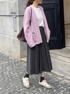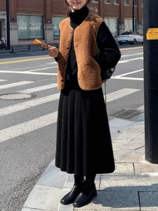 韩系穿搭厚实赫本风毛呢百褶裙高腰显瘦休闲半身裙女秋冬别致长裙