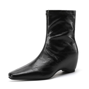 新款法式复古百搭瘦瘦靴极简精致气质韩系女靴 5CM/话梅显瘦短靴