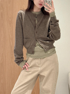 25年秋季羊毛混纺长袖针织开衫圆领长袖薄款修身小开衫 2J3E5071G