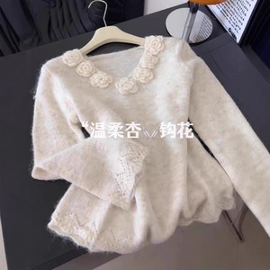 CHAO级推荐!欧货显瘦钩花打底针织毛衣2025秋冬新款软糯慵懒上衣