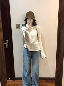 韩系白色喇叭袖长袖针织衫内搭上衣女春秋穿搭高级感气质打底毛衣